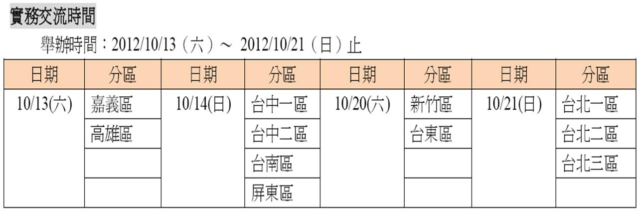 2012實務交流工作坊分區日期、議程公告囉!