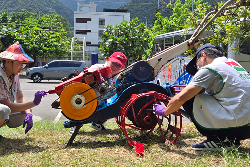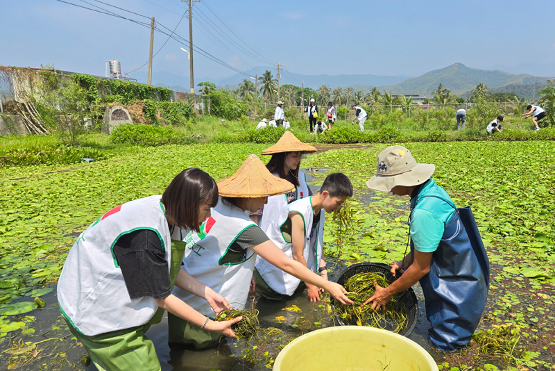 在新北市貢寮雞母嶺,原本都是水梯田,不過因為青壯人口外移,逐漸廢耕,在田野管理人蕭學苑大哥的辛苦耕耘管理之下,他已復育一分地以上的水梯田,這次信義志工一起捲起衣袖,幫忙整理水田環境,提倡有機環保概念,增加對生態環境的關懷,感受現場互動交流、分享體驗自然簡單生活,實踐里山倡議精神及環境共生理念,除雜草時會注意保留生態棲地,也為野生植物留種。