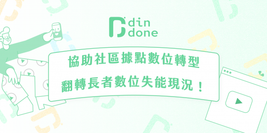 「你知道自己居住的社區有哪些活動跟福利嗎?」 「如果有,你又是怎麼得知這些訊息的呢?」 全台目前有將近7000間社區照護據點,多數致力於提供豐富的活動與課程給民眾參與,創造社區共融共好的願景。不過團隊在深入據點後,發現據點目前面臨兩項議題與需求: 1.社區據點網路行銷及價值宣傳等官方資訊曝光與呈現需求。 2.社區據點人員及長者數位能力的提升。 DinDone希望擔任社區據點資訊顧問的角色,以「有型系統」及「無形服務」的方式解決據點面臨之議題。協助社區數位轉型,同時翻轉長者數位失能現況!