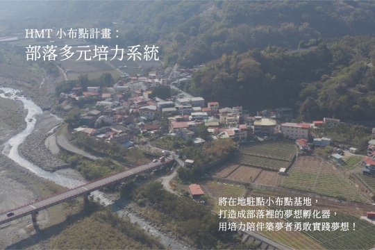 在鄉村人口不斷外移的情況下,台灣城鄉差距持續擴大,而當中原住民部落更佔偏遠地區鄉鎮的2/3。在部落裡,人們不僅得面對教育資源的匱乏,產業難以進駐導致的工作機會減少,更使問題陷入惡性循環。透過本次「小布點計畫」,HMT將以青年實踐、社區營造兩個面向,在南投縣信義鄉建立「部落多元培力系統」,讓部落地區的50位青壯年能培養工作之外的多元能力,勇敢追求夢想,也讓願意留鄉的人擁有「留下來的底氣」,並與50位部落青壯年展開對話,用多元培力系統創造部落的新轉機,讓偏鄉不遠。