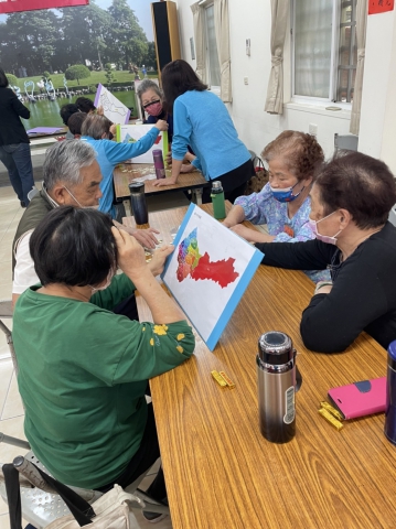 每次跟著社區鄰里出遊,遊覽車歡唱的第一首歌,總是儀式性點唱「快樂的出帆」,預祝旅途一路順風。社區大哥大姊步入半百後,國內南征北討許多地方,對於地方特色非常了解,每每談此話題彷彿每個人都是拿著GoPro直擊現場的直播主,大方又自信。今年我在據點研發了樂齡版鄉土教具,以臺灣本島及外島地圖為基地,設計許多挑戰關卡,例如名產配對、遠征國家公園、火車環島之旅等,獲得廣大好評。長輩從遊戲中手腦並用、團隊合力且自我挑戰。持續推動樂齡鄉土課且量產教具受惠更多社區,串聯同區據點舉辦首屆樂齡鄉土知識競賽。