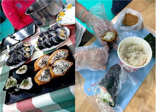 順應現今時下最夯的「華燈初上」影視文化,方圓行腳志工團體中有過去曾在條通區經營日本料理店三十年的退休老闆娘,以她的餐飲專業知識,與志工共同規劃家庭料理課程,達成下列目標。一、增進親子互動,締造和諧家庭生活;二、透過關懷供餐,關懷服務地方弱勢民眾;三、口述歷史並介紹日本家庭飲食惜食文化,增加社會多元性。四、以不同角度認識條通文化,促進地方文化多元性。