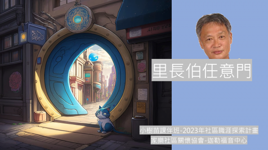 因應市場與社會的快速變動,在既有的課業輔導外,我們更希望孩童能透過社區行業來了解社區的人文脈絡以及找到自己的特質與熱情。「里長伯任意門」是一個結合社區中百工百業的經營者與孩童體驗各行業素養能力的活動,旨在幫助弱勢家庭的孩子們更了解當地社區的各種職業和工作,並且了解這些工作需要具備哪些素養、能力和人格特質。活動由當地里長介紹社區中的百工百業的經營者,透過這些經營者的生命故事,告訴孩子們如何在經歷困難挑戰時,堅持自己的夢想並且努力實現。