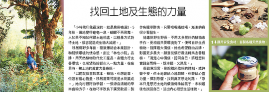 我是蔡致蕙,參與過兩屆的信義房屋社區一家計劃,也因為計劃的一路幫助,我們從三灣地區小小的的地方工作者到工作室,最後在新竹峨眉成立了林也好生活有限公司,以魚腥草及月桃等民俗植物為主題,產出自己在地無毒無藥的野草作物加工品項和協助地方友善環境小農農產品包裝銷售,希望能成為在地青年返鄉就業的友善管道,並每月以營收撥款5%捐助屏東霧台神山部落的『種樹一家』,今年我們從『責任消費與生產』擴展計畫到『全球夥伴』與在地周遭的鄉間企業一起執行各樣的發展計畫,促成在地農村轉型、減少果園用藥,共同發展深度特色旅行。