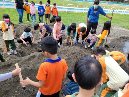 這是把菜園搬進校園的第二年,本計畫由全校師生執行,今年改變畦的造型,讓小朋友有更大的操作空間,學生一起照顧作物,收成後邀請社區家長共食,我們試著打破小學與社區的藩籬,讓社區有經驗的專家進入校園帶學生以友善環境的方式開墾菜園、種植,認識作物、因作物而來的動物,以及友善環境下衍生出來的相關課程,進行具有在地性的食農教育,不僅讓部落的野菜文化得以在地傳承紮根,更發展為多元的活動與課程。