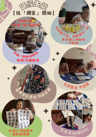全台獨老人數2020年約4.2萬,到了2023年達5.1萬,短短四年間,全台灣獨老增加了21%的人口!獨老大多「孤獨、弱勢、社會支持及參與度低」,原本就社會連結不高的他們,卻是另類的「三高風險份子」-高失能、高失智、高失依! 游筠(亞東居家居督)希望能帶領亞東居家長照機構受過「延緩失能訓練」的專業照服員,前進板橋區獨老家中,設計長輩感興趣的活動(藝術手作、桌遊下棋等益智互動、歌唱遊戲、書法繪畫、增肌動滋動…等),讓長者透過專業人員的陪伴帶動,將延緩失能融入於居家生活當中,能夠寓教娛樂增強權能。