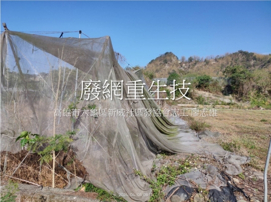 高雄市六龜區的木瓜村(新威、新寮、新興)因長期種植木瓜所產生的廢棄物(木瓜網、抑草蓆)未妥善處理,時而在夜晚聞到燒農廢的味道,看到煙霧縹緲的情況,白天的田野間或是空地上,也常有農廢棄置的現象,不僅汙染空氣,讓人致癌,景觀也遭受破壞,而這些農廢雖有垃圾車可以收,但量太大,不是分批收就是另外付費處理。第一階段先處理還能使用的網子,不能用的網子跟抑草蓆,第二階段再來環保式的處理,希望藉由廢網的處理,除了提升環境品質,留住人才、販售的利潤也用來照顧社區老人與弱勢學生,這一連串的處理過程稱之為廢網重生技術