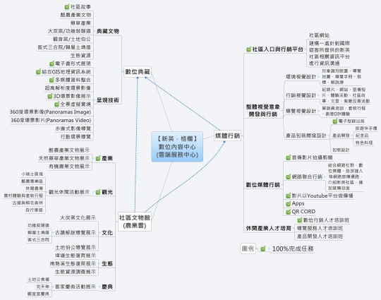 【新英.格欄數】位內容中心暨農業雲端將以社區文物館(農業雲)為核心,以3D環景影像展示、多媒體資料整合等技術呈現,進而典藏新英社區文物內涵,再結合各種媒體行銷機制,達成社區學習資料庫建立與行銷的目的。【新英.格欄數】數位內容中心以社區文物館(農業雲)、數位典藏及媒體行銷為三大主軸,並以雲端技術呈現新英社區的特色。主要效益:社區行銷無界限與即時性/提供認識社區之教育平台/社區文物典藏與在地知識資料庫的建立。