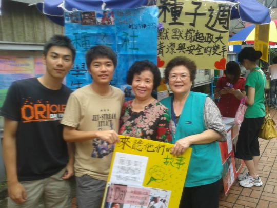 今年4月,號招了政大和附近木柵社區的居民,辦了一個文山地區的清潔工關懷活動,吸引了很多學生、老師一起來關心清潔工阿姨,簽名卡片以外,還有康乃馨。重點是想推動學生維護校園整潔,減輕阿姨們的負擔,因此想要在木柵地區調查阿姨的生活狀況,撰寫阿姨的生命故事,並且辦理社區活動,因為,我們都是生活在這裡的社區居民,環境的整潔是阿姨的奉獻,想號召更多人一起來喔!身為學生的我們,文字比阿姨擅長,因此記錄她們的生命故事也是我們責無旁貸的!