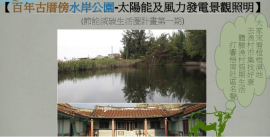 提案名稱百年古厝傍水岸公園-太陽能及風力發電景觀照明