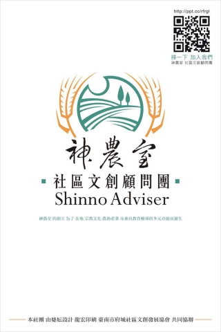 94年開始投入社區營造,透過執行社區社團等計畫歷練經驗,100年參與屏東縣莫拉克風災重建計畫駐點在枋寮鄉與佳冬鄉18個月,102年在長治鄉擔任國民年金服務員下班之餘 從事社區營造工作,歷年來發現很多社區都是缺少一個資源連結平台,透過年輕人的參與社區行動組合成一個行動網絡,為了協助宗教信仰與小農產業,配合教育推廣形成的神農室。