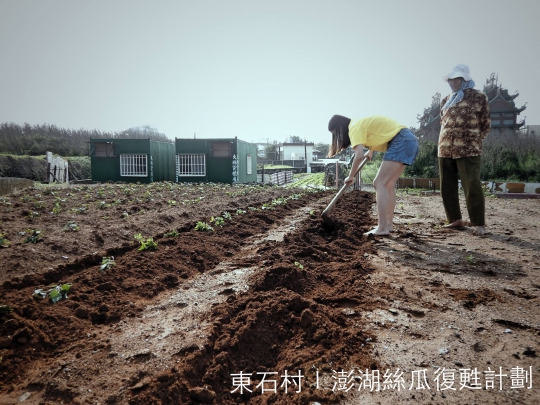 對於澎湖人而言,漁業與觀光一直是經濟上主要的發展,農業則因地理環境而受限,卻也間接造就得天獨厚的農作物,但近年青年人口外流,務農漸漸轉為休閒農業,變成長者閒暇時的一種娛樂,但我們認為農業是代表一個地方的文化命脈,每一塊土地都因為氣候、土質、農耕方式而不盡相同,所以我們著眼於澎湖過去以務農聞名的村落,最後選擇了東石村,村中人口少於百,且大多是老人,但也因此,當地資源保留完整,例如澎湖特有的菜宅、農作文化,且過往東石村所栽種的澎湖絲瓜頗負盛名,如今卻逐漸凋零,所以我們團隊希望可以復甦東石絲瓜形象。