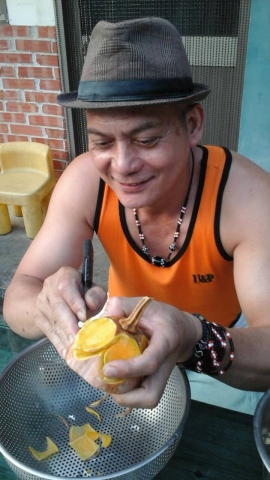 我是台東市阿美族人,從小喜歡美食和雕刻,目前是專業廚師和果雕藝術家。為了生活,離開故鄉三十多年,但一直無法忘記家鄉的原味....。在新故鄉-新竹市千甲里,我結交了一群離家打拼的原住民,在都市邊緣,一邊為科學園區建廠房、蓋大樓,一邊從事自然農法,發展社區支持型農業。未來,我想與千甲里的族人,利用農場食材,貢獻我的專長--廚藝與創意,開設原味料理班,與族人共同找尋、開發我們自己的味道,讓在都市裡的原住民孩童也能吃到阿公阿媽的料理,也讓他們的未來不再只有建築業,而是從中看到更多生涯的選擇和可能..