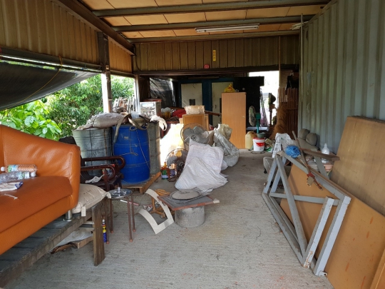 社區處有一個荒廢鐵皮屋,內容放滿社區雜物與農廢棄物。但此地點位於社區染布坊、青年農場、社區門面停車場中繼站,等於為社區一大門面。在其鐵皮屋旁有攀滿藤蔓類的廊架以及宛如綠色隧道般的棚架,更凸顯鐵皮屋的髒亂,同時也看到鐵皮屋重生的機會。因次我們決定重新整頓鐵皮屋,成為如客廳般溫馨連接社區、青年農場。此外社區重視遊程體驗課程,藉由這次改造計畫,將社區親子遊程客群往年輕人客群發展,而年輕人重視環境品質,我們將體驗遊程拉升至環境享受,提高整體產值與品質回饋社區。