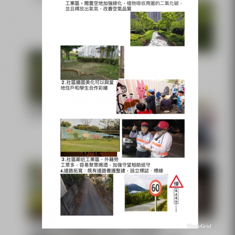 近年來高雄科學園區成立之後,大型工廠陸續進駐,加上砂石車、貨櫃車等大型車輛與日俱增,往往造成鄰近社區環境破壞及空氣污染,社區居民們決定開始積極改善環境,全面提昇居住品質。經由社區發展協會與志工們討論後並著手整頓這些空地,種植綠籬植物、馬櫻丹、黃花風鈴木、阿勃勒及羊蹄甲等,並鋪設草皮,提升社區環境空間。以及社區治安安全維護(一)、建立社區安全維護體系:鼓勵社區繪製安全檢測地圖,找出治安死角,並透過社區安全會議之討論,尋求解決方案。 (二)、落實社區防災系統