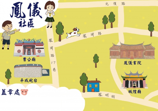 本次起因是我們了解鳳儀社區內擁有各兩項文化資產與歷史建築,而我們將其中一項文資—「鳳儀書院」作為本次企劃主軸。企劃提案發想主要分為四大面向,「豐富歷史建築」、「在地人文風情」、「認識家鄉」、「凝聚意識」,然而將四大面向總和起來,我們為鳳儀社區設計了一日遊行程、親子活動、社區季刊投稿、特色文房四寶禮盒,為的是希望藉由社區自身特色活絡社區產業,將鳳儀社區打造成特色小鎮,也希望藉此吸引青年返鄉帶動社區發展、提升當地居民自主參與度。