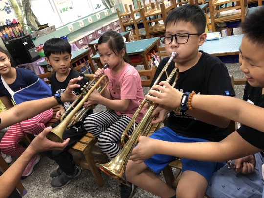 高雄市管樂團立案於高雄前鎮草衙,2019年我們前往當地的明正國小執行文化部文化體驗計畫,其中包含認識管樂、管樂器體驗、節奏創作等課程,我們深感讓孩子從小接觸音樂,不見得將來一定要成為音樂家,但卻可以透過音樂的接觸與薰陶,讓孩子在成長的過程同時建立起其他技能與態度,於是我們興起以高雄市前鎮區草衙的六間國小,透過進入學校演出與學生互動的過程,找出有熱情及潛力的孩子一起加入一場由高雄市管樂團與社區一起籌辦的音樂會,讓社區的居民一起動起來。