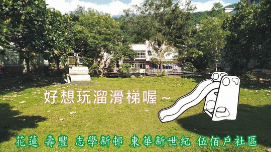 溜滑梯不考慮罐頭模組,而是以工作坊的形式,由社區居民(包括孩童)共同參與發想籌劃並協力興建完成,讓這個溜滑梯成為社區的特色,帶來歡樂。