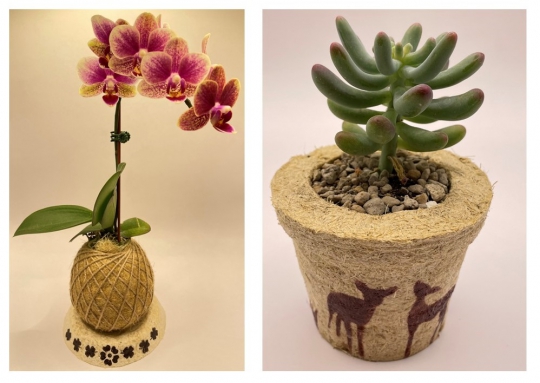 南投縣沒有垃圾焚化爐導致垃圾問題很嚴重,然而埔里鎮還有很特殊的茭白筍殼的垃圾問題。埔里茭白筍產量是全台的90%以上,種植面積1800公頃,龐大垃圾量導致茭白筍殼被隨意棄置。歷來有一些再利用的產品、加速分解菌及製成生物炭的嘗試,但都無法達成具經濟規模地處理。我們獨創將茭白筍殼以低成本的機械加工製成纖維狀的材料,而且首創以植物栽培介質的概念運用於植物相關產品上,目前已研發用於植物球及多肉植物的植栽盆,成為慈恩社區獨特的在地特色產品,還可進一步發展成社區產業,又可達成循環農業的永續做法。