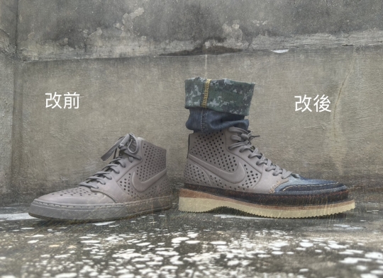 我是手工製鞋師,某天在海邊散步看到沙灘上的海廢,激發靈感將舊牛仔褲與報廢球鞋拆解,以手工製鞋技法重組將被丟棄的廢品,創作出獨一無二的再生手工鞋。因組裝過程需要打磨機,我向街邊修鞋舖借用工具,意外引起修鞋匠的興趣,促成彼此技藝交流,我傳授他製鞋技術,他則成為再生手工鞋的授業教官。我們計畫進一步攜手將這技術再傳授給喜愛創作的手作同好,當眾人具有獨立製作能力,並能享受在廢品重塑的創作時,聚合的眾創力,將開啟潮流改造鞋的新視界,也期望藉由新創技藝分享,開啟共習、共創、共營、共利的在地創生。