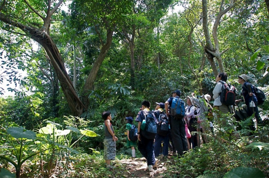 在一次做社區螢火蟲分佈的踏查中,發現這原是由枯葉鋪設而成的地毯一點一點的透著小亮光,這邊閃閃、那邊亮亮﹔在白天這地方我們管它叫『空中奇緣』,因為一棵雀榕用神奇的姿勢攀附在相思樹上而得名,除了白天的風光,我計畫著把這裡的夜晚用幸福的媒介介紹給大家。採用自然的石板鋪陳人行步道,枯葉地毯及石板間的空隙即為螢火蟲的生存空間,取得里長的共識計畫性的除草,並佈置螢火蟲幼蟲的食物來源,場域完成,待來年晚春更可與和美山賞螢導覽串聯,相較於用扶梯將人群隔離的螢光劇場,我的螢光奇緣劇場是不是更幸福多多。