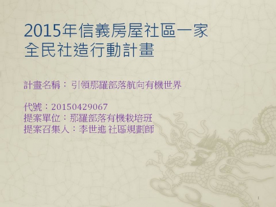 提案名稱引領那羅部落航向有機世界