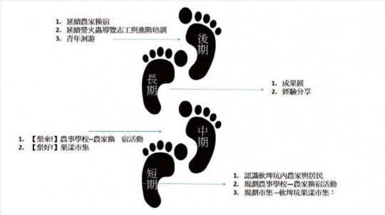 我們想要認青年體會社區的樂趣,因此我們計畫在今年暑假,在營隊的體制下配合打工換宿,去塑造一個青年能短暫又頻繁接觸社區的機會,所選擇的社區是台中東勢的"慶福社區"。 除了讓青年體驗農村社區的生活,我們還預計舉辦一個大型農業市集,此市集將由社區中農家和打工青年一同構思如何展示販售農產品,吸引顧客。此活動不但能將社區特色產品推廣出去,也能增進青年和農家的交流,讓青年真正融入社區的生活中。最重要的是,此活動有延續性,不會為我們團隊離開社區而中斷,可以一直運作,吸引更多青年回首社區。