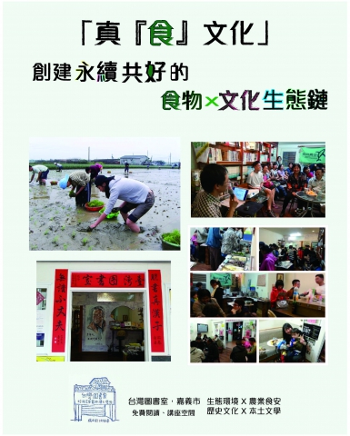 我們計畫從文化延續的角度切入,推廣「食物與農業教育」與「友善環境的農業」。「食農教育」的長遠目標,是要學習與自然共處的智慧。並且讓大家都支持「友善農業」,形成穩定的市場機制,讓生產者能安心生產優質農產品,使生產者與消費者達成共好。 「『食』在話」-講座、影片播映與讀書會 以專題講座、影片播映及讀書會等形式,吸引參與者的興趣。將焦點放在台灣常民文化中的可食用植物與現今工業化食品的對照,進而由食安問題延伸,釐清環境保育是如何與人類的生存緊緊相扣。 「『食』在安心」-校園教育講座 我們將在嘉義市中小學進行巡迴講座。讓孩子認識自然生態與餐桌上食物的關係,成為友善農業的實踐者。 「有機真『食』」-親子廚房 舉辦親子飲食體驗活動,讓參與者認識到食材生產與食物安全之間的深刻關連,進而成為友善農業的支持者,漸漸成就穩定的友善農業供需循環。 「腳踏『食』地」-田間趣味體驗 舉辦田間趣味體驗營,實地參訪有機農園,使參與者親身體驗友善環境農作物的培育。 「野菜捉迷藏」-野外郊遊找野菜 帶領參與者到休耕田地、郊外田野找尋野菜與藥草,並解說野菜、藥草的食用方式與療效,重拾並傳承前人「食草」的智慧。