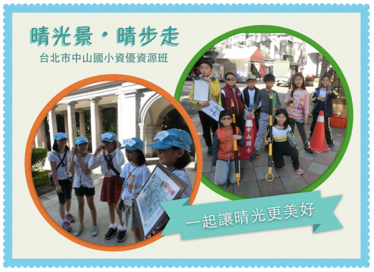 我們就讀於台北市中山國小,三年級開始便隨著課程進入學校附近的「晴光商圈」探索學習。 隨著課程中對社區的了解後,我們想透過「社區導覽」與「社區問題解決」讓晴光變得更美好。 社區導覽方面,我們組成導覽小隊,以地圖設計、活動募集、網路報名等方式,將晴光的歷史、文化、美食分享給更多人。 社區問題解決方面,我們鎖定「行人徒步區」中面臨到的「機車」問題,從實地觀察測量、了解各方需求、聯繫相關單位,擬定可實施的解決方案。 現在我們已經四年級,但這些行動仍持續進行,未來將號召更多學弟妹加入,一起讓晴光更美好。