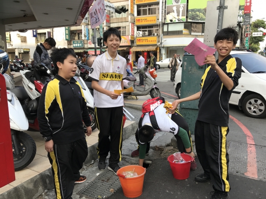 「你們好棒啊!來,叔叔請你們每人一杯紅茶。」早餐店老闆親切地讚美這群國中生。當年,他們是小小國一生,只要看到街上有垃圾,就爭相衝去撿,哪怕被雨水沖爛的,哪怕藏在樹叢深處的,沒有人在乎弄髒,全部徒手解決!現在,他們國二了,這次他們將以身作則、向下扎根,帶著小學生把愛護社區的種子播下去!他們知道,光是認知到環保概念是不夠的,應該走入社區,用行動去回饋。這個半日營,將以「社區撿垃圾」為主體,融入「英語小短劇、Let’s Talk等闖關活動」,讓學生們同時享受英語學習以及社區打掃的樂趣。