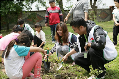 捲著袖子細心種樹的陳世岳表示,志工一個人只要花一天種一顆樹, 小小的力量就可以協助潮厝國小的師生擁有好的學習環境, 真的是非常有意義的事情,希望能夠透過這些小小的樹苗傳遞出去,讓台灣更多的社區, 得到更多的關懷與溫暖。