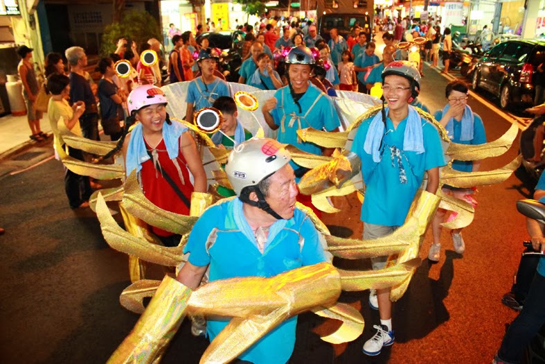 傳統七月放水燈分四個部分,六月底晚間的「落大街」踩街,由城隍爺廟出發,