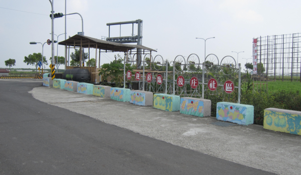 近的水泥墩,在上頭,有我們這片土地上的番茄、稻米、香瓜等代表物,讓這裡顯眼