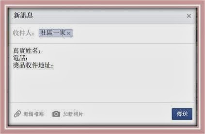 小組,以「得獎之FB帳號」於社區一家粉絲團留下訊息 ,內容包含您參與投票中留下