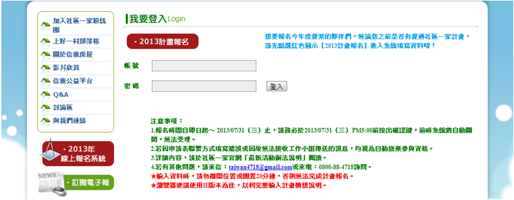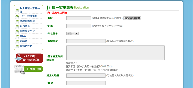 請提案單位依規定填寫「2013社區一家幸福行動計劃」申請表上各欄位(圖3);