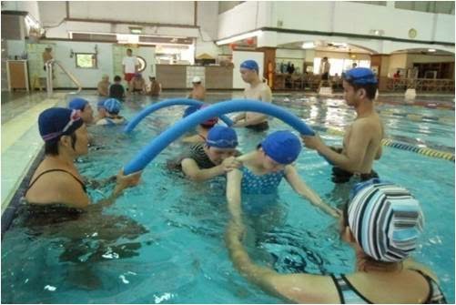 每週一次的「我和紙飛機相約游泳去」活動,透過SPA池讓身心障礙者覺察自己身體的變化,感受身心合一的歷程,學習在水中吶喊,產生聲波與水波的療癒震盪。在老師的協助下,以浮條進行漂浮的動作,感受在水中呼吸的節奏,學習在水下呼氣漂浮,讓身體感受柔軟的水性。透過老師一對一引導,協助服務使用者漫步在水中健走,能放鬆地在水面上浮仰漂浮。熱心的志工協助服務對象除了在水下呼氣之外,亦能配合手部的動作,進行緩慢的游泳練習。