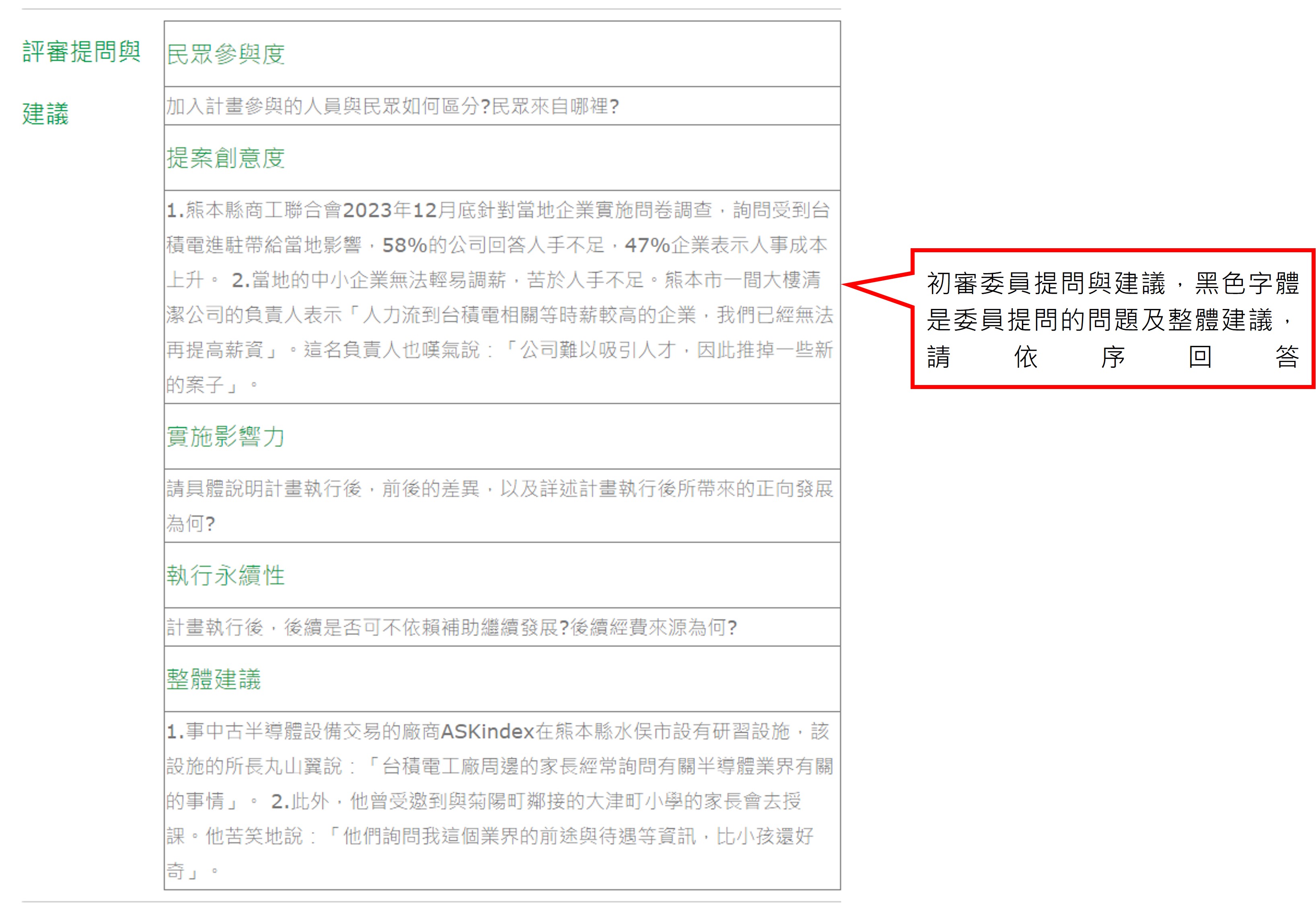 步驟四:初審委員的提問與整體建議,請閱讀並於回應欄位依序回答。
