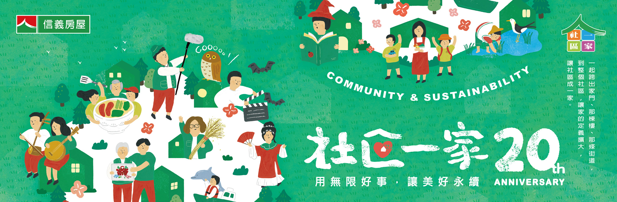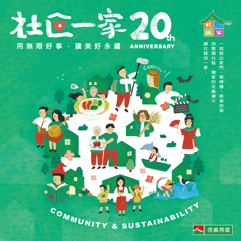 信義房屋每年投入逾兩千萬支持社區營造,20年來累積投入逾五億元推動「社區一家」,是國內單一民間企業支持最久、投入金額最多的社區改造計畫。
