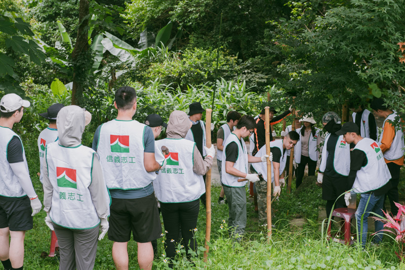在新北市貢寮雞母嶺,原本都是水梯田,不過因為青壯人口外移,逐漸廢耕,在田野管理人蕭學苑大哥的辛苦耕耘管理之下,他已復育一分地以上的水梯田,這次信義志工一起捲起衣袖,幫忙整理水田環境,提倡有機環保概念,增加對生態環境的關懷,感受現場互動交流、分享體驗自然簡單生活,實踐里山倡議精神及環境共生理念,除雜草時會注意保留生態棲地,也為野生植物留種。