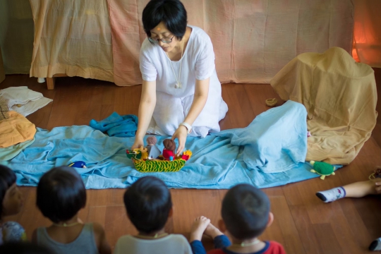 我參與的《光小孩華德福親子共學團》在花蓮壽豐鄉走了六年,為孩子們操演了兩百多場偶劇,隨著季節、時令與節慶說了百多個故事。坐落在鯉魚山腳大型社區裡的共學團,也時而在社區開設藝術課程與籌辦偶劇,為社區提供一個柔軟的面向,聚攏住戶們的向心力。故事有力量,戲劇有感染力,除了孩子,大人也在製作偶與參與偶劇過程中,重新陪伴自己回到童年再長大一次,那些故事同樣也療癒了大人,在幼年沒有被關照的失落與創傷在這些故事與富有藝術性的偶劇裡,讓大人們在得以撫摸、重建與療癒之後被自我賦能,用一個村子的力量養彼此的孩子。