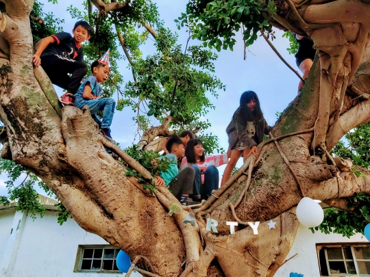 疫情期間,夏日的午後特別慵懶,我和書屋的孩子們躺在樹下的平台,透過大榕樹的葉子,看著藍天上的白雲,我們想要寫一首詩…,斯拉突然跟我說:老師,你知道北極正在溶化嗎?你知道北極熊和企鵝很快就沒有地方住,也沒有食物可以吃了,對於地球這樣的改變我感到恐懼,如果地球沒有人類,就不會發生這樣的事情了!對於一個十歲的孩子說出這樣的話讓我感到十分的震驚,是啊!未來是他們的,他有權利發出這樣的怒吼,微弱卻那麼的有力量!