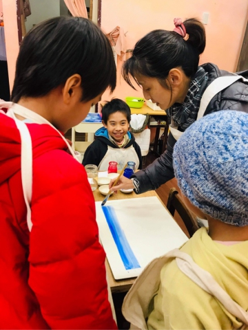 我在花蓮華德福小學共學團體擔任藝術教師,課程內容以華德福教育作為基底,同時也觀察學員個人特質予以引導發展。在一次學期結束成果發表中,社區住戶參觀學員作品之後,詢問我能否也在社區開設藝術課程。我雖然在體制內接受15年藝術教育,但專才並非展現自身創作才華,而在於看見他人才能所在。加上耳邊常聽見人們說自己沒有藝術天份,更讓我想要藉由社區畫室提供人們對自己的藝術能力有不一樣的認識,得以看見自己的作品有光。