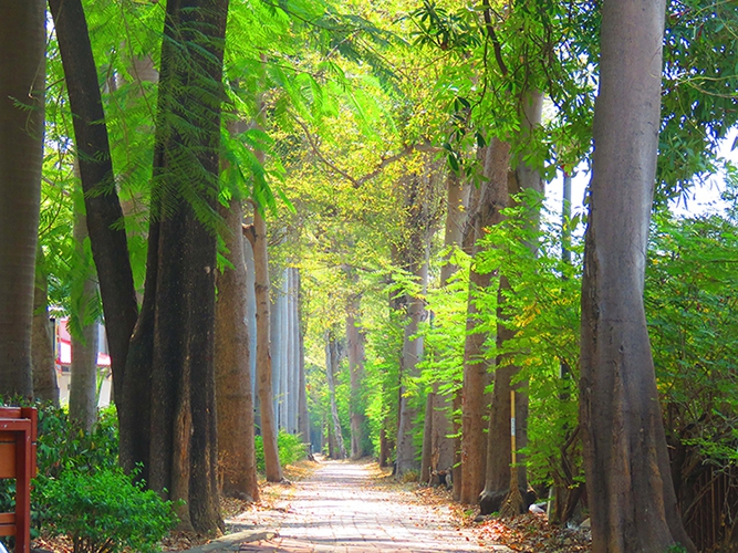 印象攝區的綠色隧道好悠揚,印記社區的芬多精浴好清爽,流連在迷彩間的目光,搭配微風的和鳴鏘鏘,讓綠海成為步道最堅持的嚮往,多麼愜意的飛翔!多麼熱情的歡唱!妳溫柔的讚揚,我溫馨的誇獎,從地老到天荒,這是妳我曾經約會的地方。