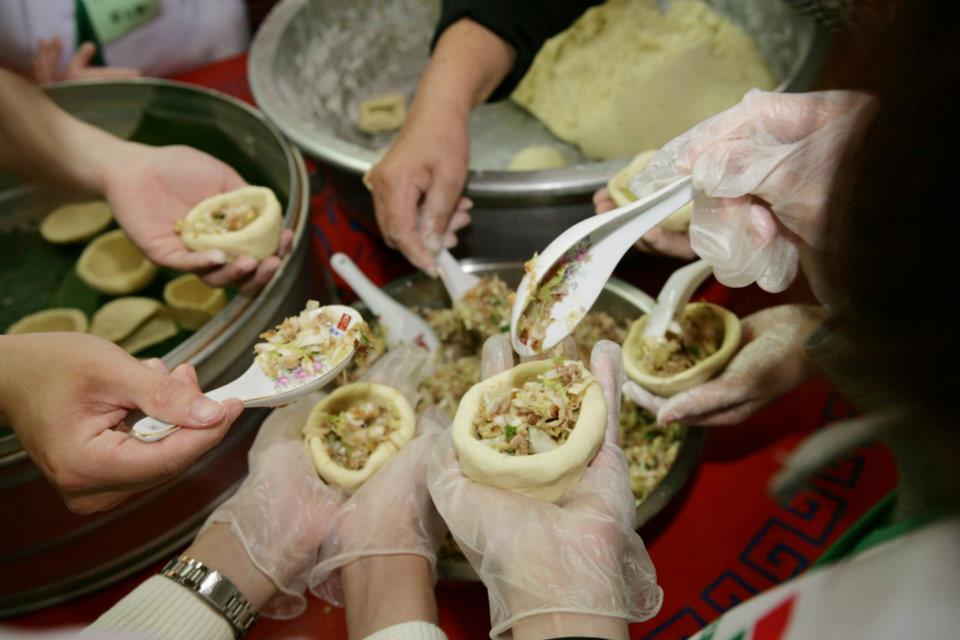 一抵達社區,社區的阿姨們早已開始忙碌,志工們馬上捲起衣袖接手,社區精心準備四道餐點,傳統高麗菜悶飯、手工高麗菜包、傳統炒米粉及美味小菜,很多志工因為這次活動第一次捏麵糰、第一次拿鍋鏟,非常特別的經驗,社區阿姨們也非常熱情的傳授煮食撇步,該放多少油、內餡要怎麼拿捏完全不藏私的公開。