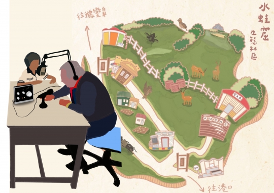 水蛙窟社區是恆春半島東岸的百年社區,目前人口約50人,大多為長輩。社區學童所能獲得的教育資源較少。本團隊成員曾到訪社區進行社區解說員授課時,知悉該社區學童對於自媒體充滿興趣,卻無從學習,此外對於社區的文化故事顯得興致缺缺。擬透過團隊成員的品牌與媒體經營經驗,傳授給社區學童,透過採訪社區耆老,建立水蛙窟社區的PODCAST節目-水蛙電台。在傳授學童自媒體與個人品牌經營的同時,能讓他們透過採訪過程,主動吸收社區文化故事,達到文化傳承的精神,也提供學童建立個人品牌與自媒體經營的學習機會。