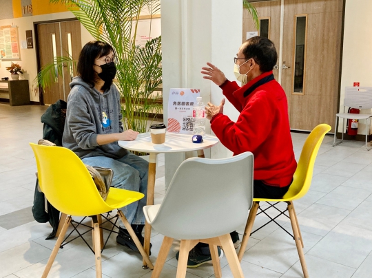 在全台幾乎面臨城市老化嚴峻挑戰之際,新竹地區是國內人口平均年齡最年輕的城市,更因設有多所大學,帶來許多外地青年人口,因此本會以新竹為中心,以創新方式設計跨世代交流活動、場域,重視世代之間的心理需求,扮演世代同理的橋樑。新竹地區在地長者組成背景多元,除了在地長住深知文化故事的長者外,也有許多退休科技業專家,或資深創業家,可做為在地青年生活、人際、求職等問題之陪聊師。本計畫於清華大學校園內營造「跨世代陪聊」場域,協助媒合青年與高齡陪聊師,期望借用長者的人生智慧,紓解青年的人生焦慮與困惑。