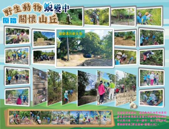 動機:大目降丘陵被大片綠色資源披覆,雜草叢生、人煙絕跡,造成蚊繩叢生,失去了綠意盎然的美麗,希望藉由此計畫案凝聚社造的「動力」轉化,能讓民眾更0距離觀察倘佯休閒綠色山丘。在此區域,有豐富的野生植物和瞬間出沒的野生動物;交通未發達時,在地居民的足跡,連貫口埤至新和庄形成豐富歷史與生態的古道,值得藉以一窺在地深度文化。 說明:這在日據時代就是培育種苗的處所,自政府接掌以後,持續提供政府農業單位使用。搬遷後如今成了荒煙漫草的丘陵,希望脱變優雅清爽的綠化丘陵,讓民眾休息片刻時,多了一個綠意休閒好去處。