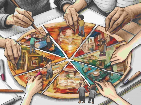 記憶裡中庭花園是「義大利社區」充滿活力的核心。孩童盡情嬉戲玩耍,長輩在旁談天說地,鄰里之間互助友愛,茶餘飯後問候閒談,就像和諧的大家庭。然而,傳統社交模式隨著日常步調加速與科技產品普及發生變化。後疫情時代,人們更容易沉浸在自己的世界而脫離所處環境。街頭巷尾寒暄的畫面逐漸消逝,缺乏互動導致居民凝聚力和認同感下降,對社區整體品質帶來負面影響。有鑑於此,本計畫提出「披薩拼圖」作為重啟空間資源的可能性方案,邀請居民透過影像、繪畫,分享生活美好時光,藉此保存社區共同的幸福回憶,並使珍貴的人情溫暖得以延續。