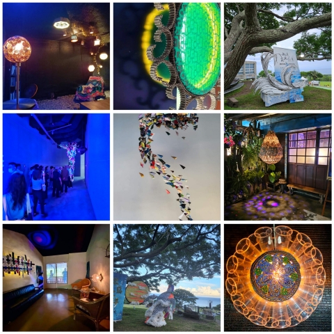 到東部生活14年一點一滴從頭學習更原始的生活方式察覺便利對環境帶來了多巨大的污染與傷害。開始以循環再生創藝燈及循環再生裝置藝術在台東、花蓮、宜蘭等縣市辦展覽,讓大家看到海邊的廢棄物、生活中的回收品、與垃圾、在雙手巧妙的改造後成為精緻、獨特有質感的再生藝術,讓更多的人看到循環再生的無限可能。經歷過大大小小的展覽後終於遇見了富里鄉的這間美麗的一甲子木造老屋,計劃改造好後以J COFFE循環再生的創藝展覽空間再次華麗登場。