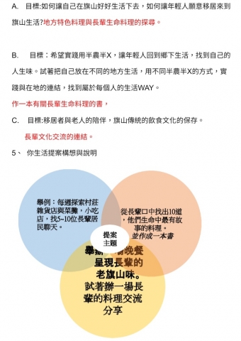 想到旗山半農半X,也很喜歡旗山在地的生活方式與傳統的的飲食文化,所以想藉由探訪旗山長輩或廚人們,心中懷念的老旗山味,把這些料理記錄保存下來,並作成一本書 每個地方都有它的味道,每一個味道都有創造它的人,而每一個人的內心都有一份屬於他的味道,在他的人生中陪伴著他一路向前,即便曾經迷失了方向,還是能靠著記憶中的好味道,找到一條回家的路。 透過尋找長輩料理口中的老旗山味,我們才能夠在這塊古老的土地上,找到他的過去感受他,在種下新的種子時,他生命的記憶中才會有跡可循,才能長出更有力量與溫暖的真心。